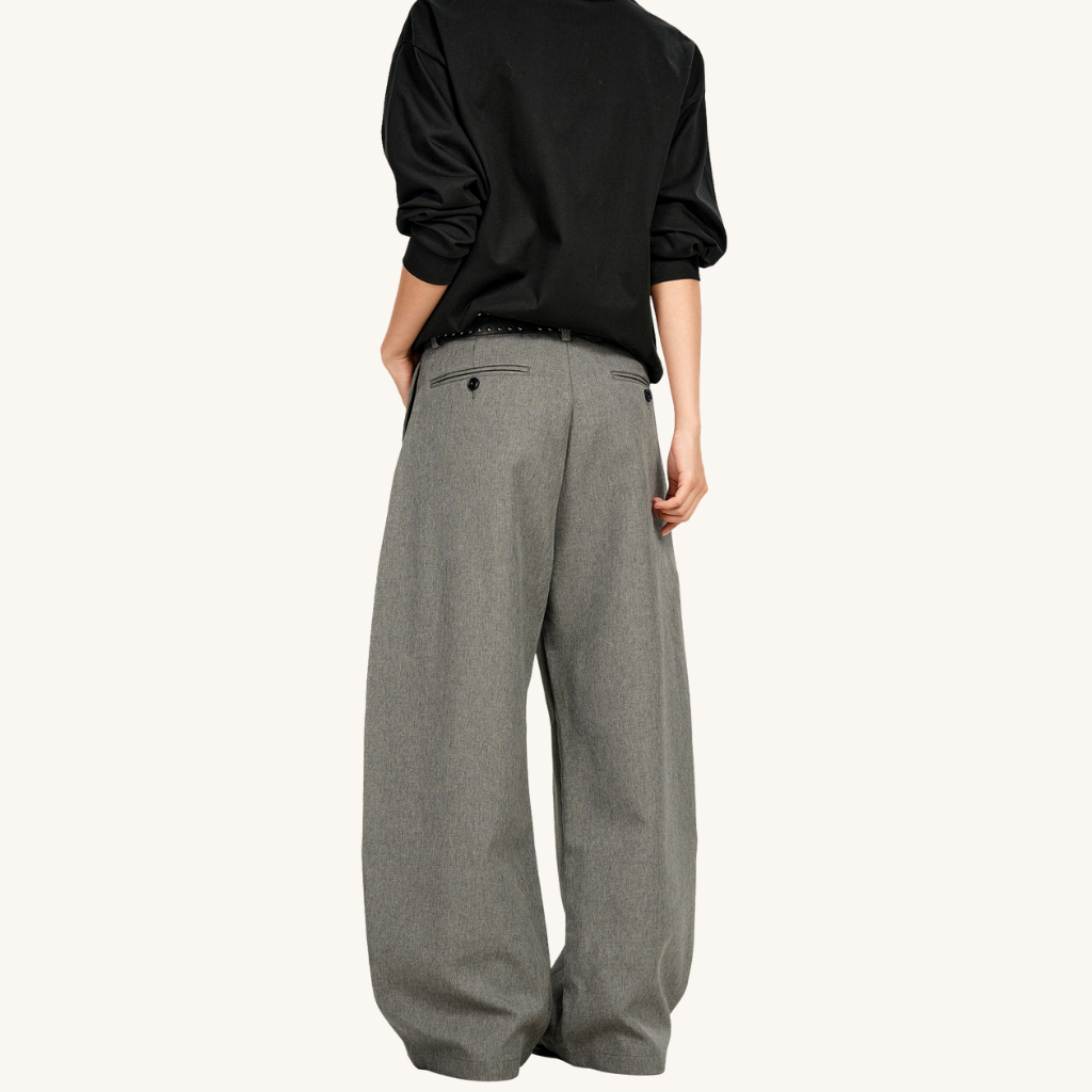 Ellenvinis American retro scimitar trousers men's and women's double pleated design sense loose and versatile wide-leg silhouette casual trousers