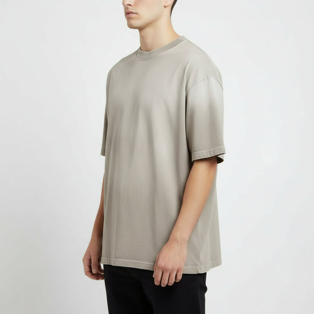 Ellenvinis 350GMS Gradient Grey White Raw Edge Destroyed Oversize Heavyweight Short Sleeve Tee Unisex