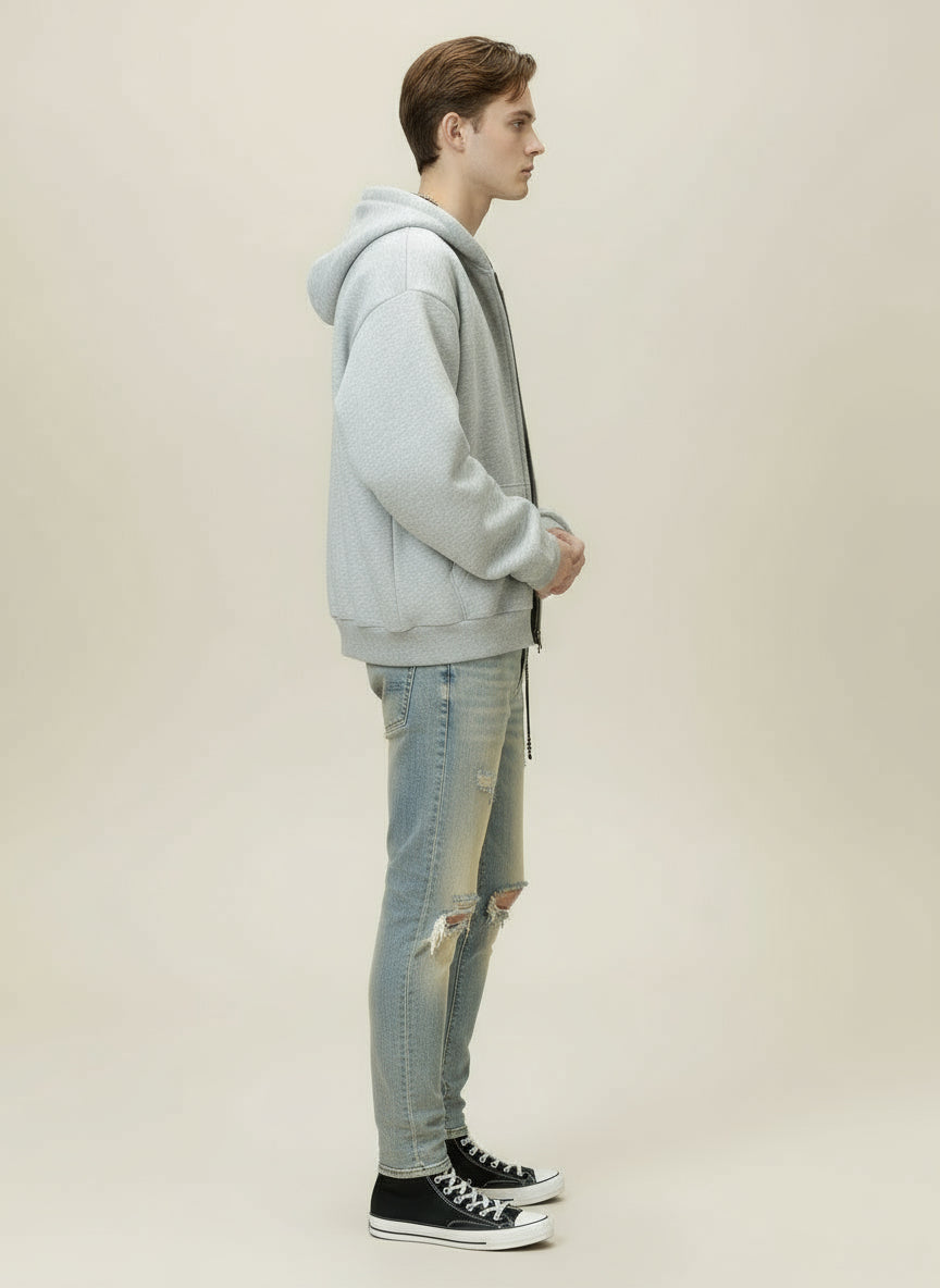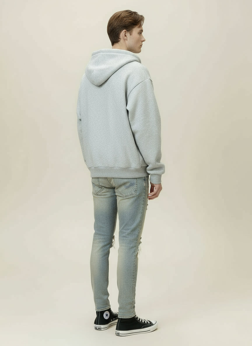 Each double-sided design of Ellenvinis is made with our signature washing process, which not only ensures softness and comfort, but also enhances the durability of the fabric. Our environmentally friendly washing technology replaces the traditional stone washing method, reducing the impact on the environment while giving each garment a unique vintage texture.