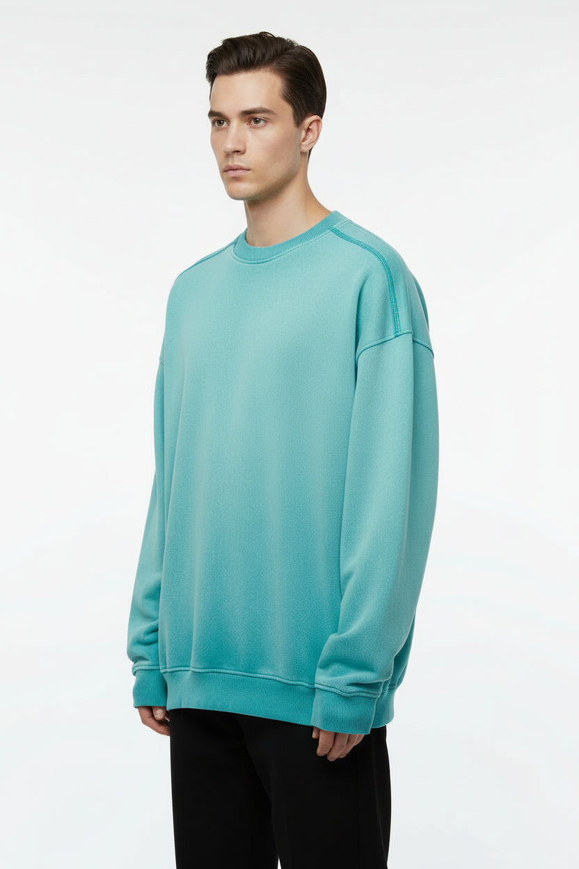 Ellenvinis Pale Turquoise Heavyweight 430gms Vintage Washed Fleece Crewneck Sweatshirt Unisex Oversized Streetwear