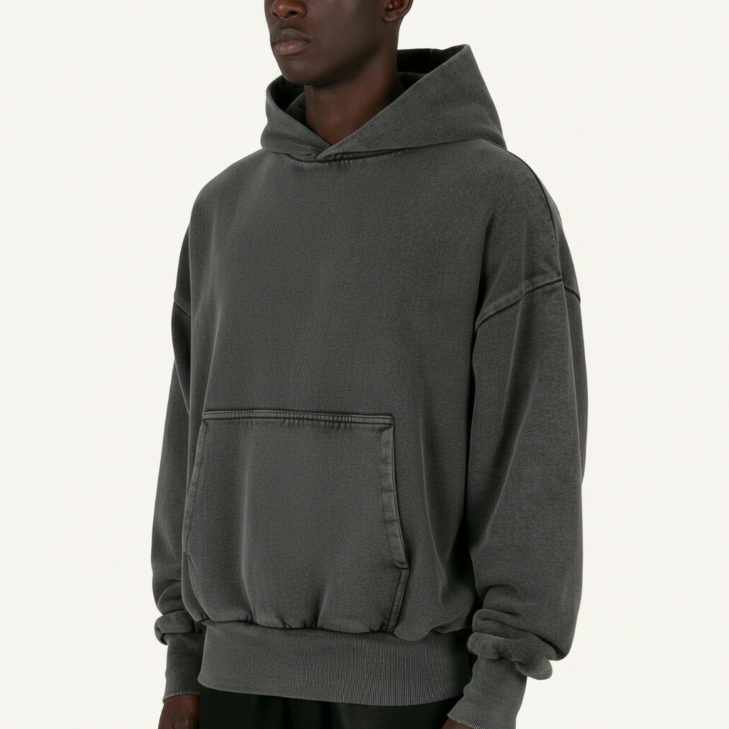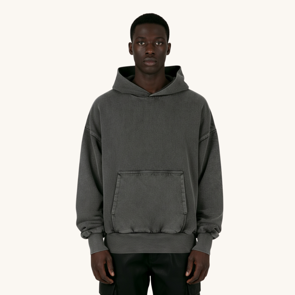 Ellenvinis 1800Gms Vintage Black Double Layer Hoodie - Oversized Soft Cotton Retro Hooded Sweatshirt